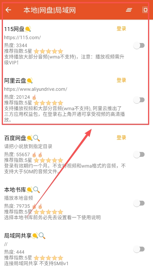 2、源管理支持接入多个网盘,每个源都配备了热度评级与使用提示功能,用户可依据文件类型挑选适配的存储平台。