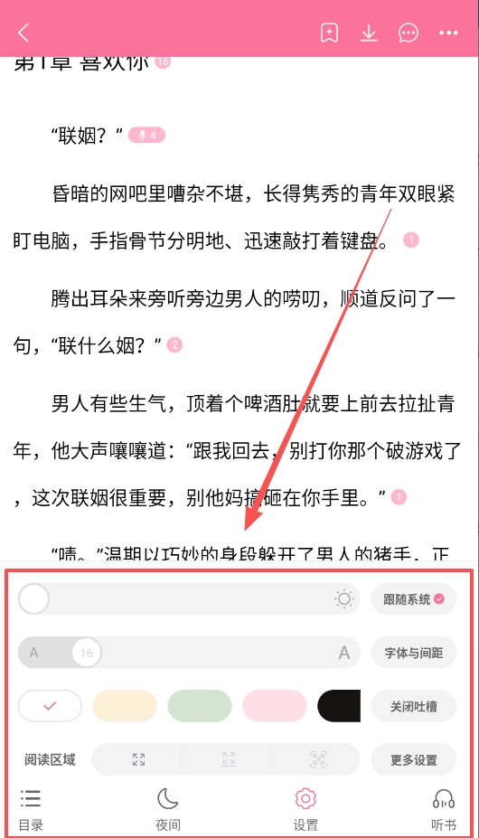 4、阅读设置选项支持用户自由调整,可打造最契合个人喜好的阅读环境,助您尽享流畅无阻的阅读乐趣。