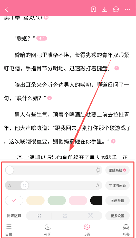 找到喜欢的小说后,直接点击封面即可开始阅读。阅读过程中,你可以根据需求调整字体大小与屏幕亮度,继续向下滑动页面,就能顺畅追更后续的剧情内容了。