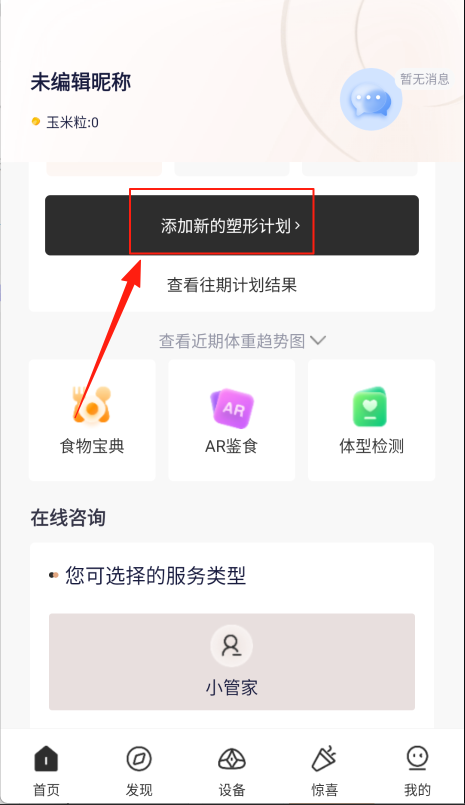 1、打开软件后,在界面内找到添加新的塑形方案,并点击。