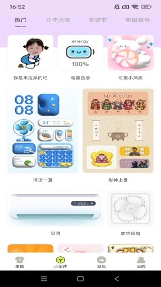 3、小组件相关的素材十分丰富,热门主题、壁纸素材之类的都能找到,大家可以根据自己的喜好随时去搜索。