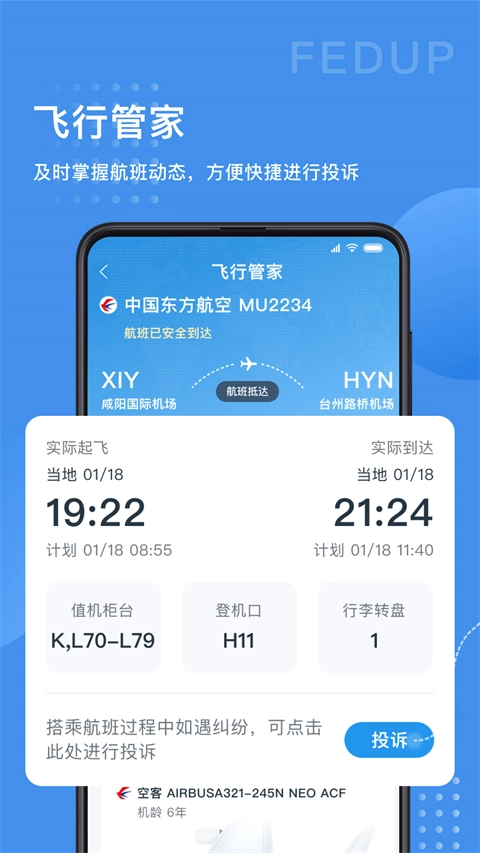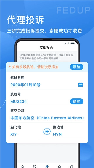 Fedup是深圳市盈生科技有限公司上海分公司开发的航空纠纷投诉处理工具平台,专注于协助用户解决航班延误、取消、行李损坏等航空问题,配备丰富功能与支持,致力于维护消费者合法权益,提升用户出行体验。当您遭遇此类问题时,只需在Fedup提交申诉,专业的航空专家与法务团队就会介入,与航空公司协商沟通,为您争取合理赔偿。
