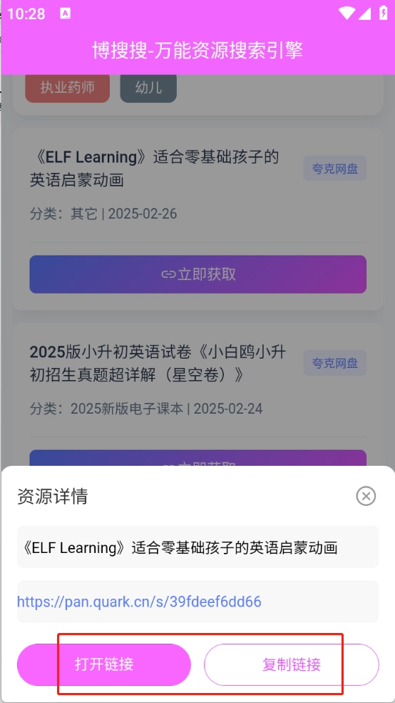 博搜搜,能帮你查找所需的学习资料与短剧资源,所有资源均为免费,搜索速度迅捷,支持复制搜索到的资源链接,为用户提供极为全面的资源,而且还在持续更新,你想搜索的内容大多都能在这里找到。