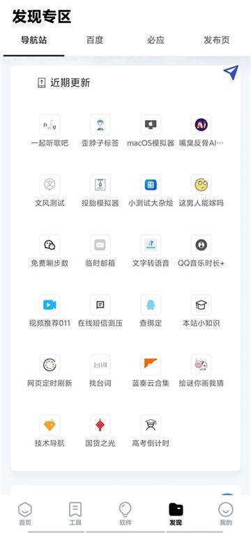 在“发现专区”里,有不少实用的导航网站和搜索引擎工具。