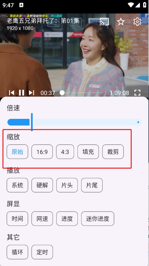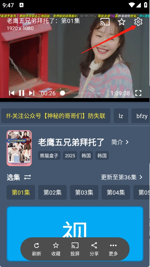 用户点击进入想看的影视播放页面后,点击右上角的设置按钮。