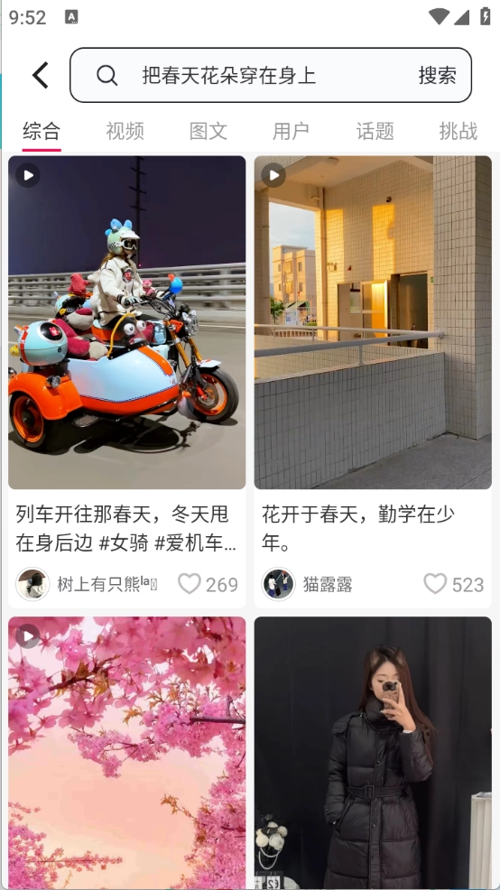 3、就会出现很多的视频、图文以及话题等。