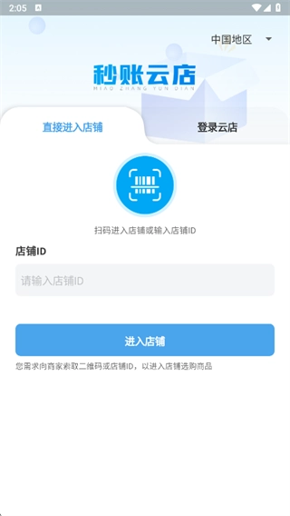 2、根据角色选择进入店铺或登录云店,输入店铺ID快速进入。
