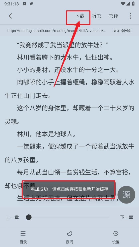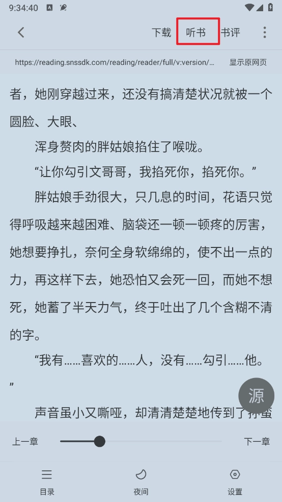 2、接着打开并进入小说阅读界面,点击“听书”按钮就可以了。