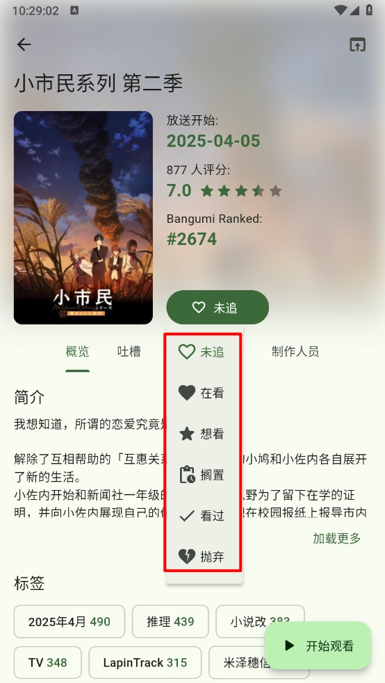 3、包含未追、再看、想看等类别,可依据自身需求选择对应的标签。