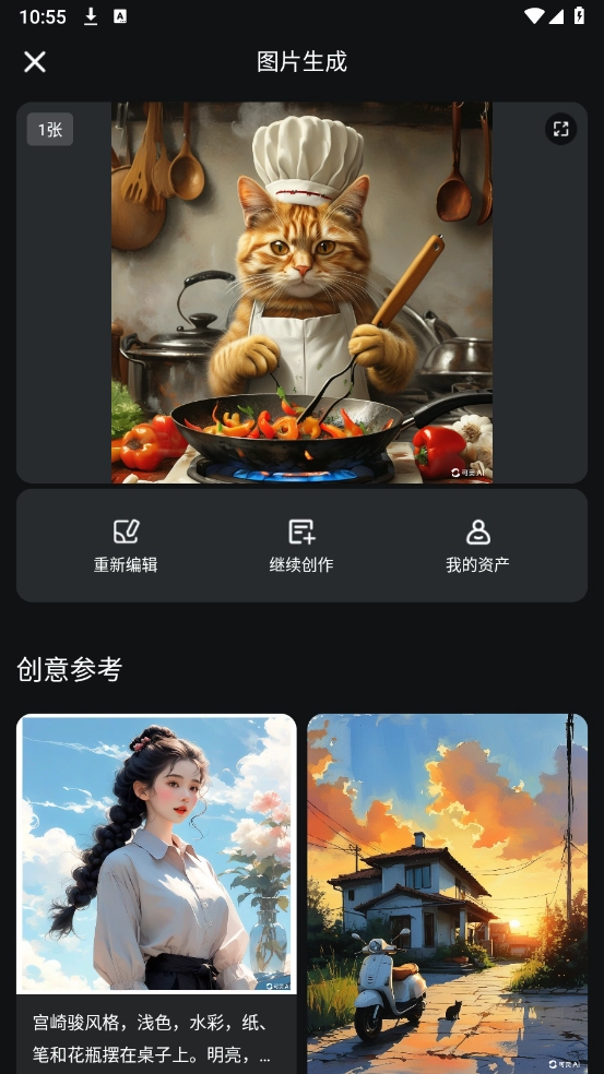 2、依据描述或参考图,可生成不同尺寸与风格的创意图片,并且能一键把图片转换成视频。
