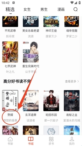 1、进入软件后,就可以开始找自己想看的书了。比如我想找之前很火的网文《赘婿》,直接点击进入就行。