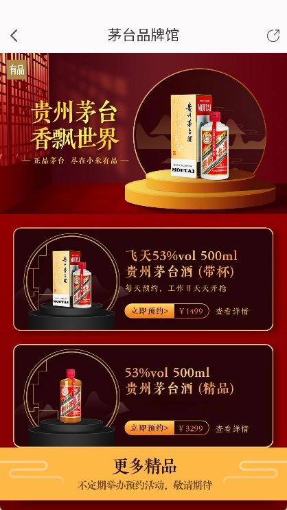 5、在茅台品牌馆页面里,点击你想预约的茅台酒,目前有飞天茅台与贵州茅台这两款可选。