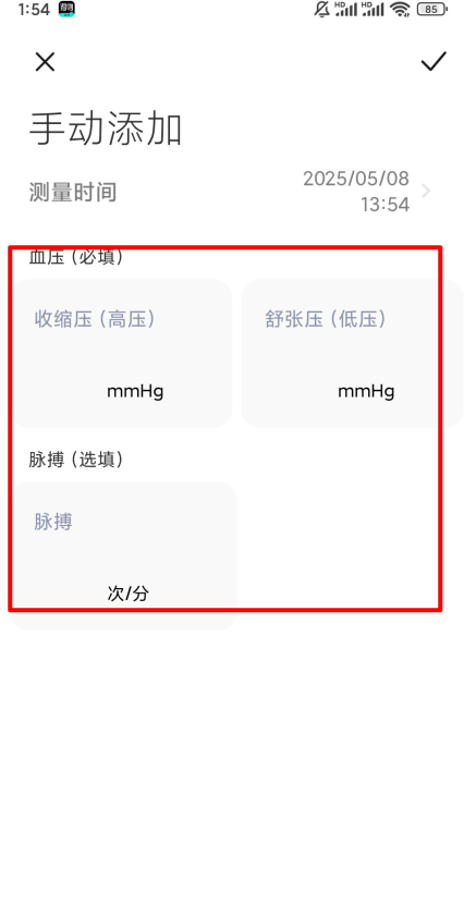 4、最后输入相关血压数据后,点击右上角保存即可。
