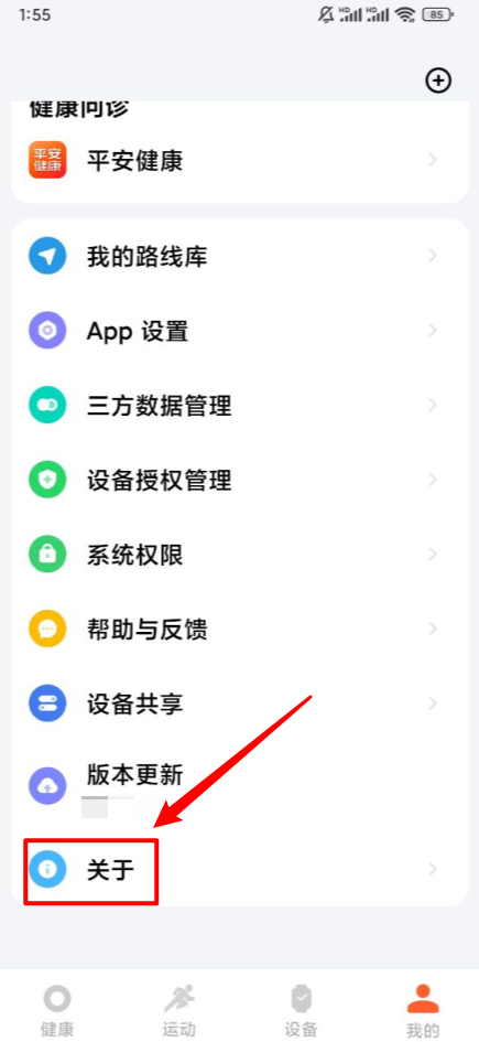 2、在我的页面滑动到最底部点击"关于"。