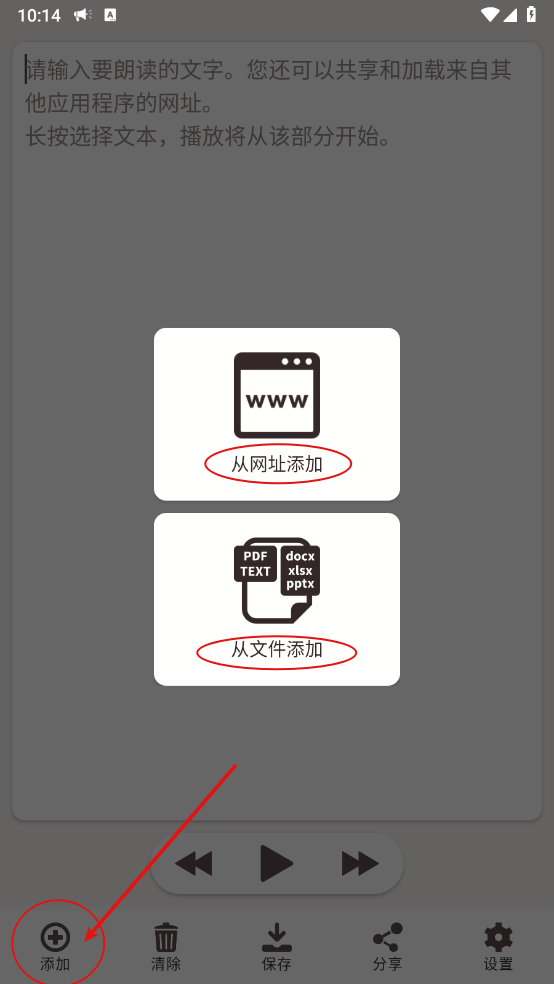 2、点击左下方的添加,支持从网址或文件进行添加。