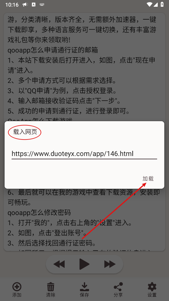 3、如图,输入需要添加的网址,点击"加载"。