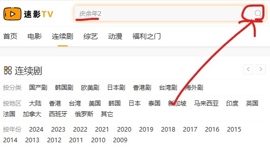 2、输入你想观看的影视内容名称,比如《庆余年2》,接着点击右上角的搜索按钮