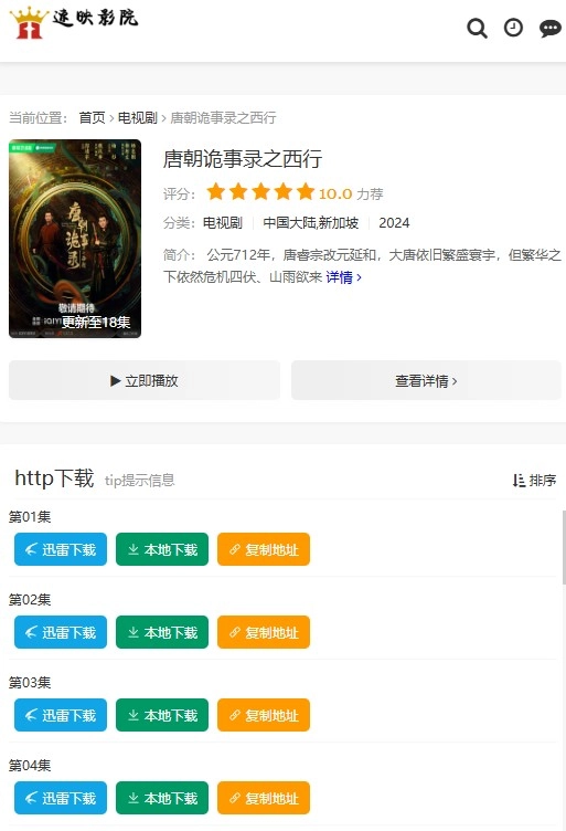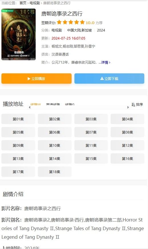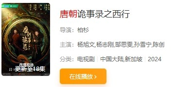1、启动速影TV,借助搜索功能或其他途径查找目标电视剧,比如《唐朝诡事录之西行》,找到后点击该剧的封面、名称区域或在线播放按钮即可