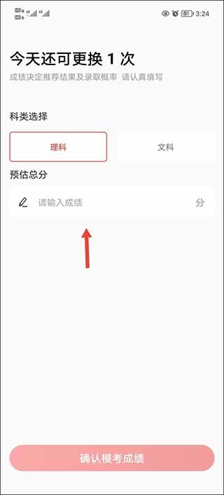 3、选择自己的科类以及预估的高考分数。