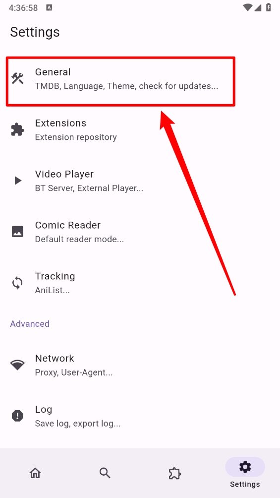 2、在设置页面点击"General"。
