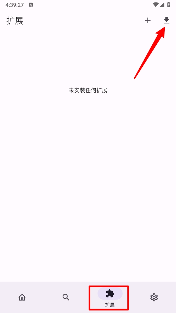 1、打开软件主页后,找到“扩展”板块,点击该板块右上角的图标。