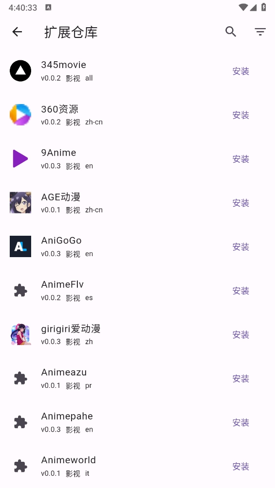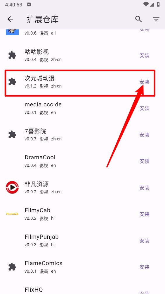 3、最后滑动选择需要的动漫扩展,点击右侧的“安装”按钮就可以了。