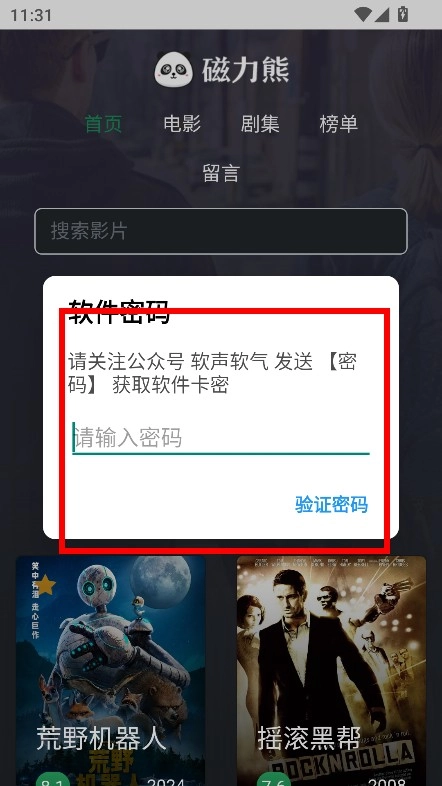 2. 会弹出需要输入卡密的窗口,直接填写卡密“软声软气”,然后点击验证密码按钮