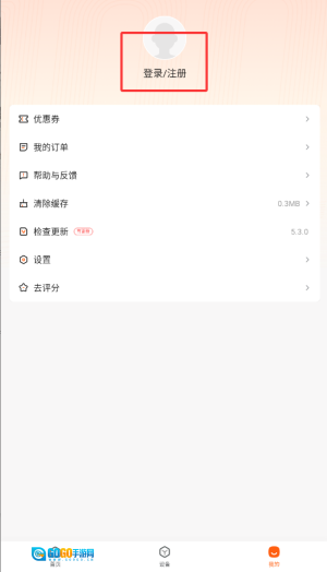 2、在账户管理区域找到“登录/注册”按钮并点击,即可进入账号验证页面。