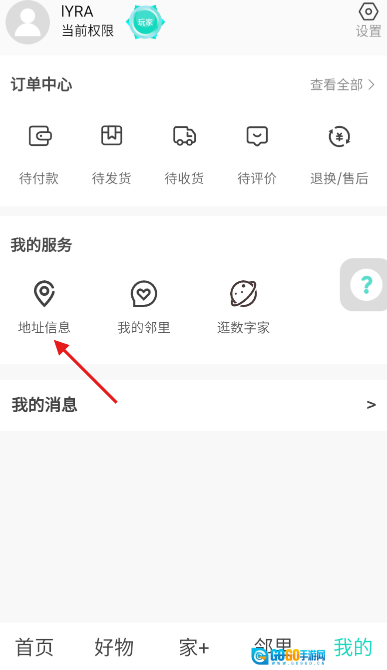 2、进入“我的”页面后,在功能列表里找到“地址信息”选项,点击进入该选项。