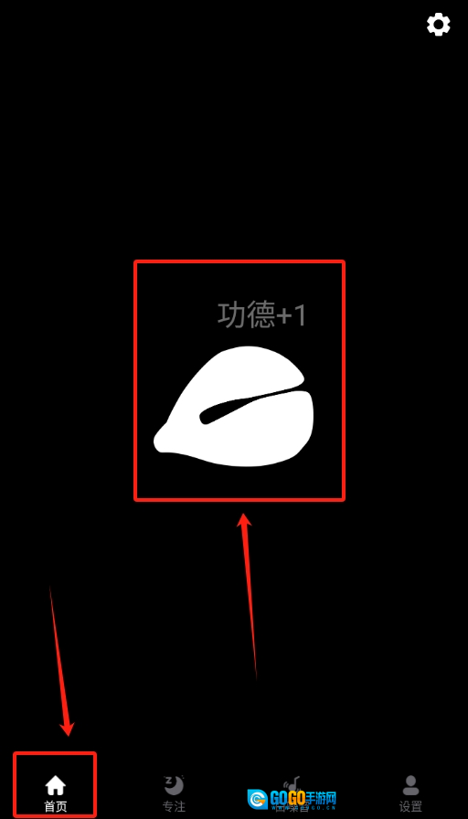 1、打开木鱼净心软件,在首页轻点一下木鱼图标,就能给自己加上一份 “功德”。