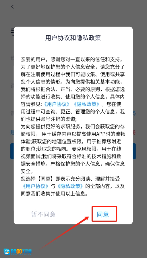 1、打开齐鲁招聘网软件,映入眼帘的便是软件协议页面,果断点击同意,方可继续后续操作。