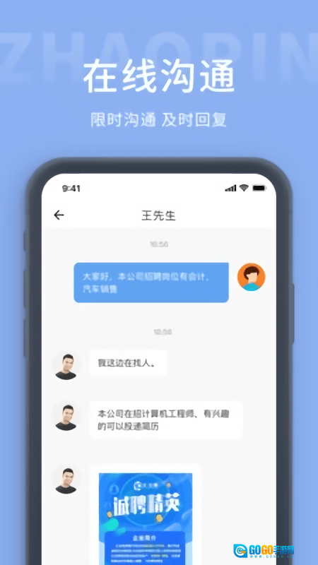 2、在线聊聊互动沟通更直接高效:可与企业在线深入聊薪酬、福利、工作环境等内容,快速聊出理想工作。