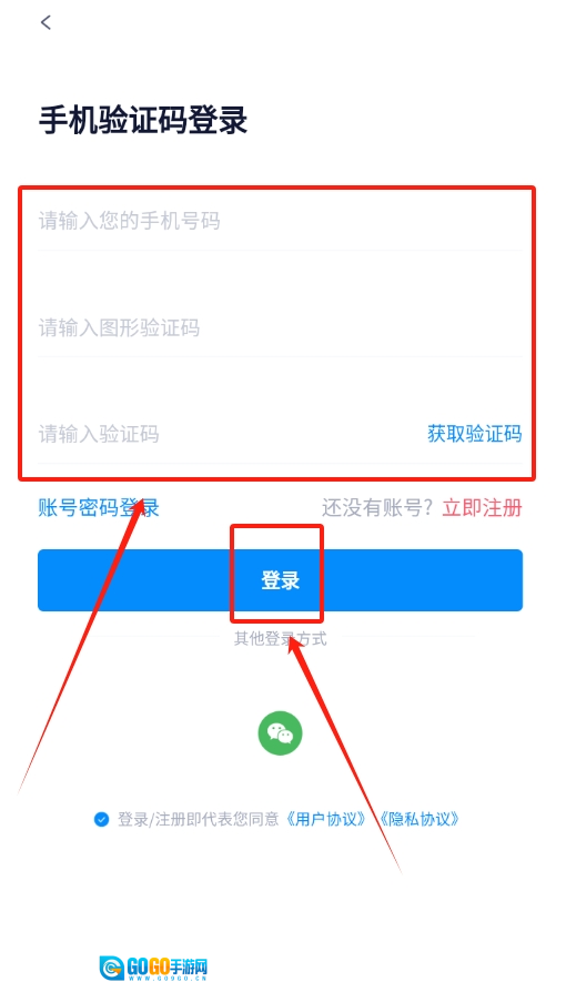 3、在登录页面,在指定位置输入自己的手机号,点击获取验证码,待收到验证码后填入,即可成功登录。