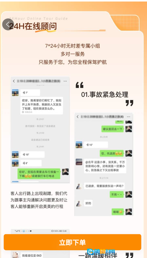 3、专属旅行管家群可提供24小时咨询服务,涵盖签证、应急协助等事项,支持语音、图片等多种形式的沟通。