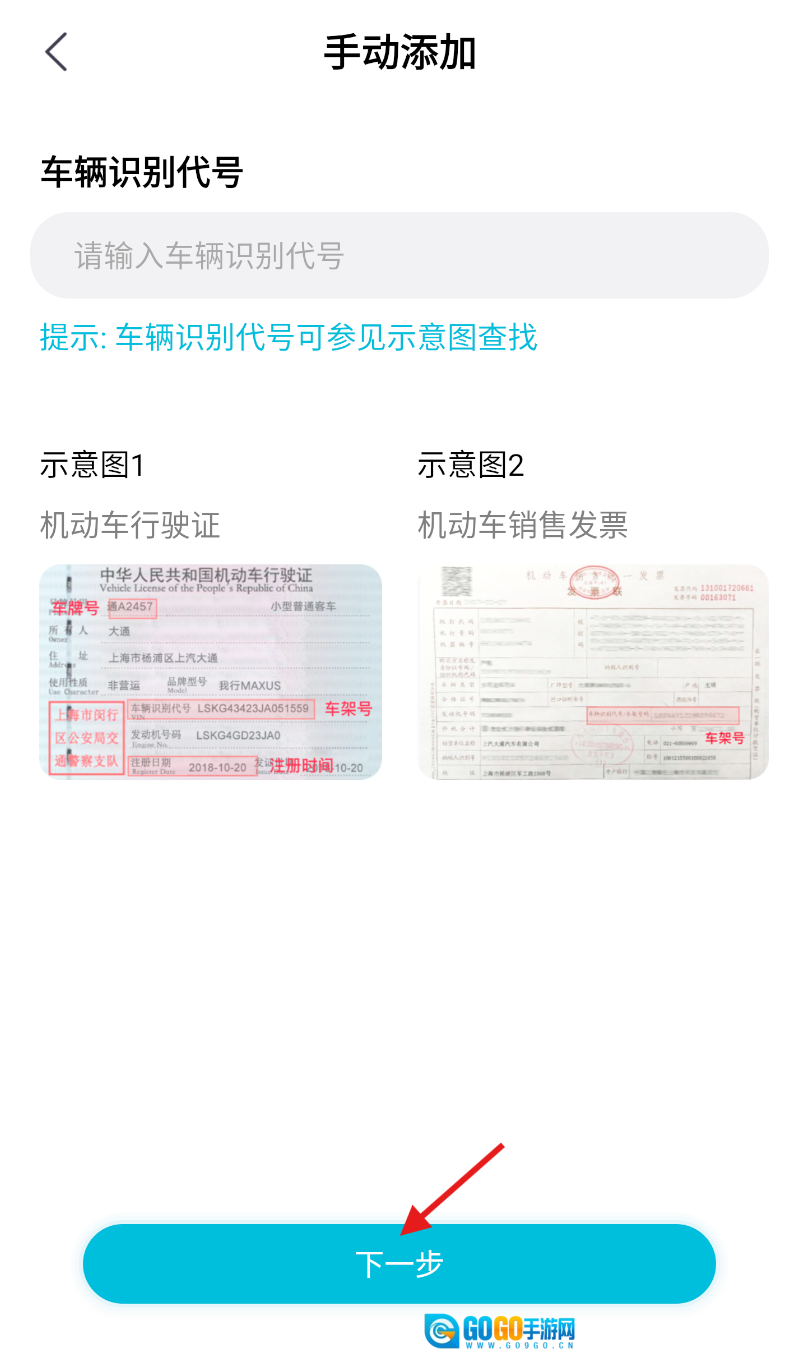 4、按照页面给出的提示,依次把车辆行驶证、购车发票等相关材料的信息上传上去,仔细核对确认没有问题后,点击“下一步”按钮,这样就完成绑定了。