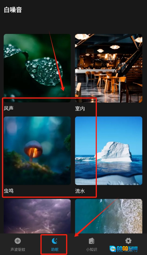 2、软件内还配备了助眠白噪音功能,那些轻柔舒缓的声音,能够帮助你放松身心,让你更快地进入甜美的梦乡。