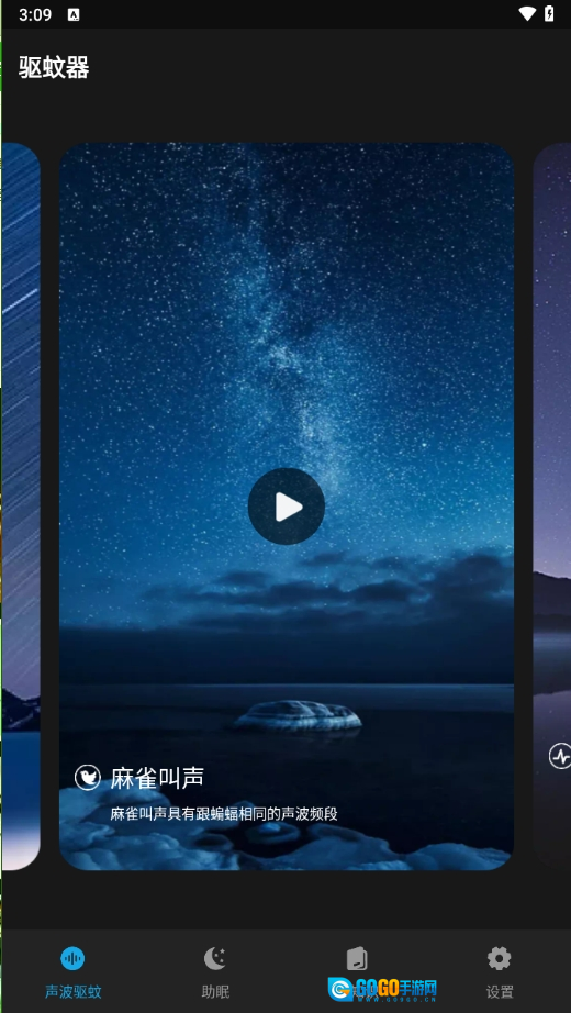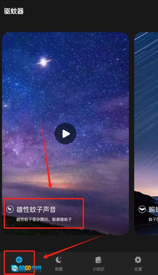 1、 启动驱蚊神器应用程序,进入主界面后,你会发现“声波驱蚊”这一功能选项,点击进入该选项即可听到雄蚊子发出的声音。