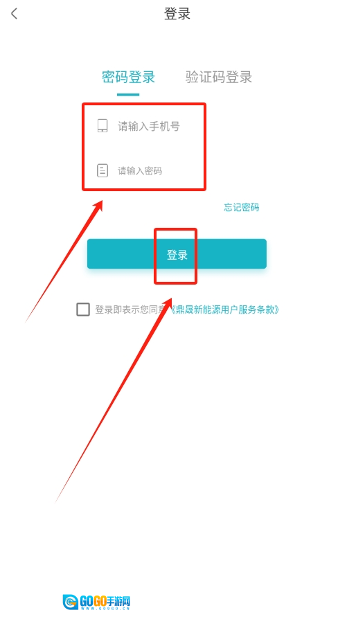 1、启动鼎晟充电应用程序,在登录页面正确填写个人手机号及匹配的密码,执行登录步骤。