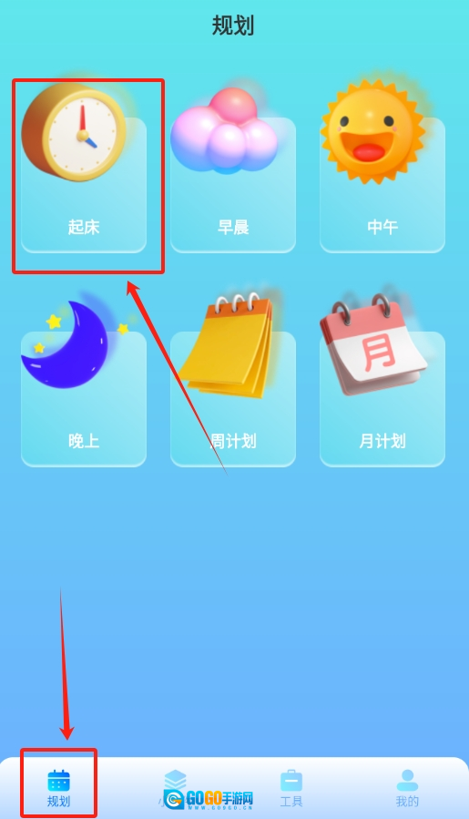 1、启动软件进入首页后,找到“起床”选项并直接点击进入。