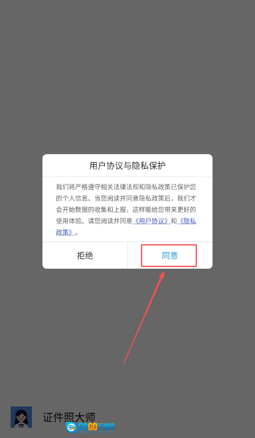 1、打开证件照大师后,界面会弹出软件协议弹窗,仔细阅读协议内容后点击同意选项,完成协议确认才能进入软件主界面。