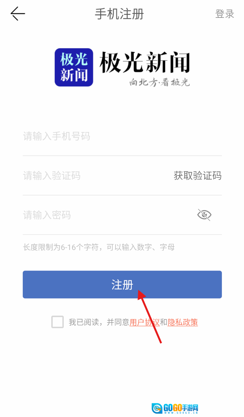 4、在注册页面依次填入手机号、获取的验证码,设置密码,确认无误后点击注册完成账号创建。