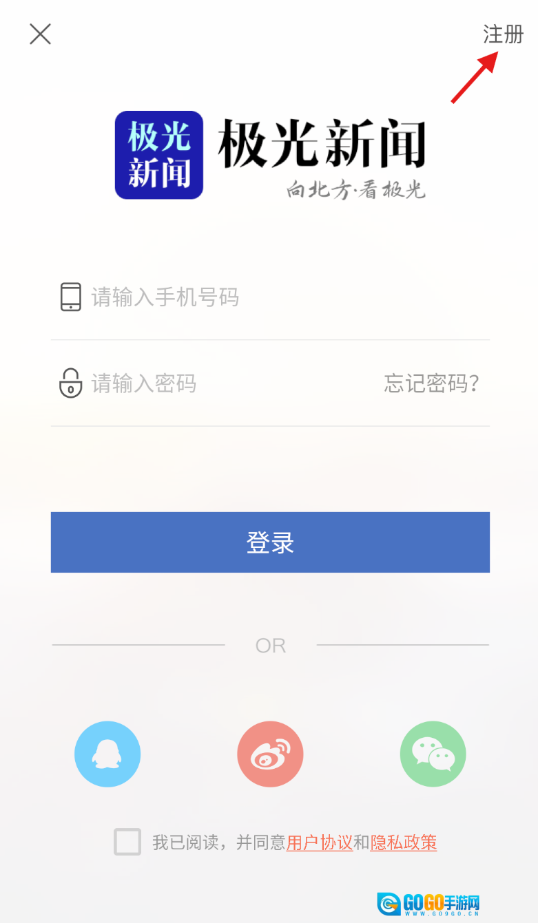 3、进入登录界面后,留意右上角区域,点击 “注册” 按钮,开启注册流程。
