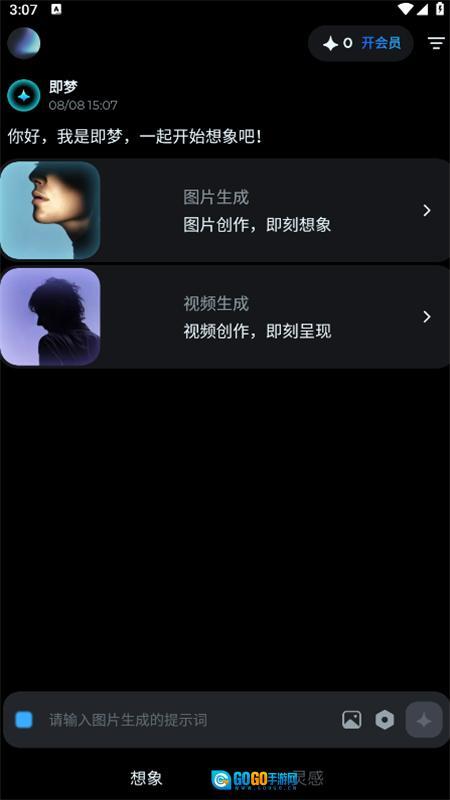 然后打开进入首页,就能看到图片生成和视频生成的功能板块。