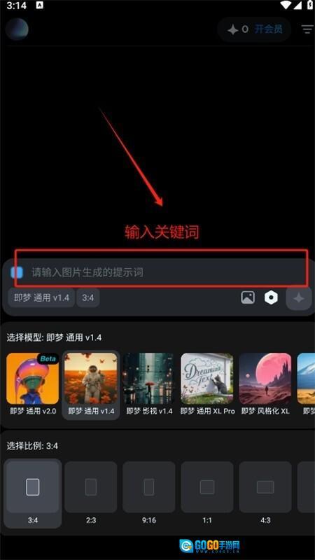 3、接着挑选所需功能,点击该功能后在下方输入关键词进行描述,还能选择模型与比例,也可选择图片。