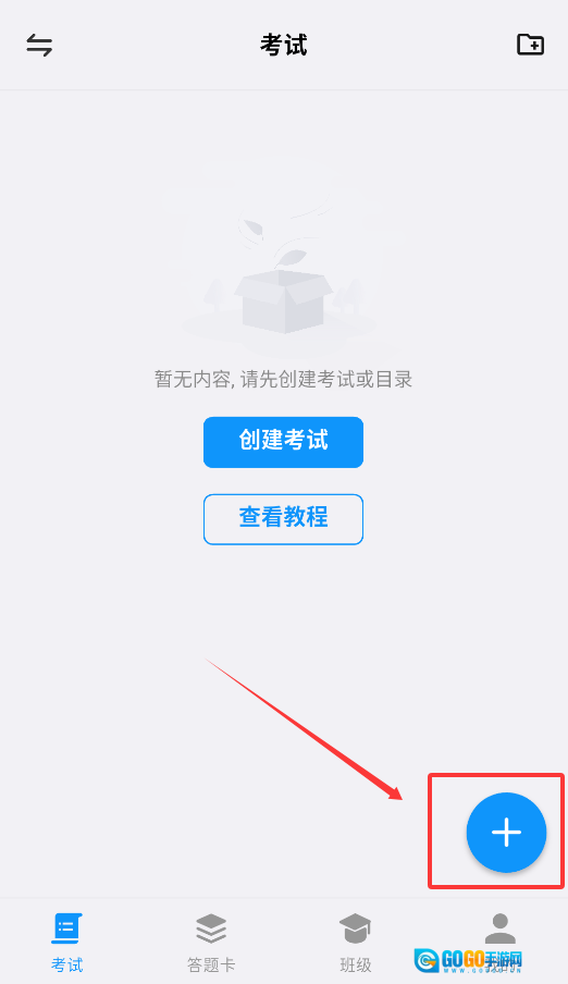 1、打开答题卡助手Pro应用,点击界面右下角的“+”按钮,进入新建考试的页面。