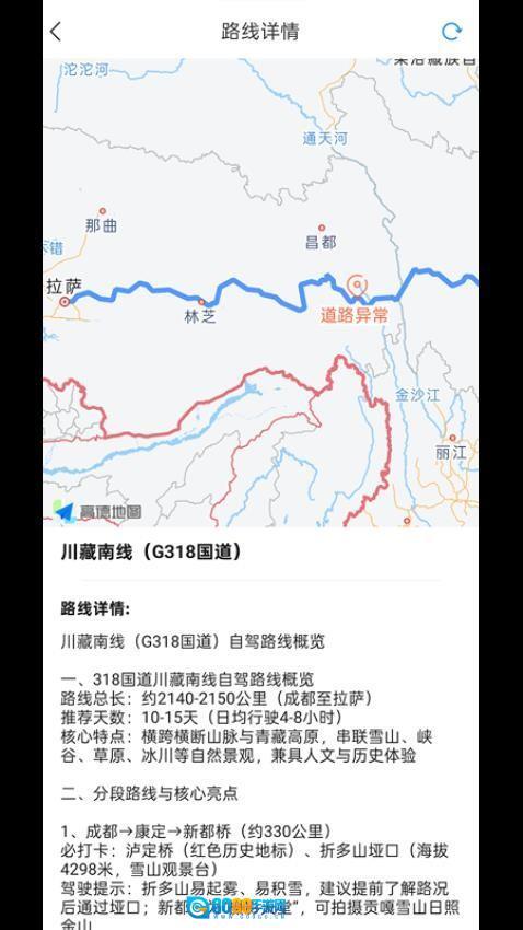 1、多线路径查询:涵盖川藏线、青藏线在内的8条核心进藏路线,可查询各路线的详细海拔示意图、加油站点位分布等实用信息。