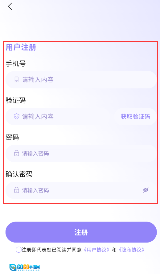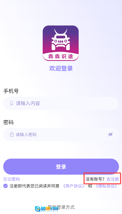 启动应用后会进入登录页面,此时点击“注册”按钮就能开启账号创建的流程。