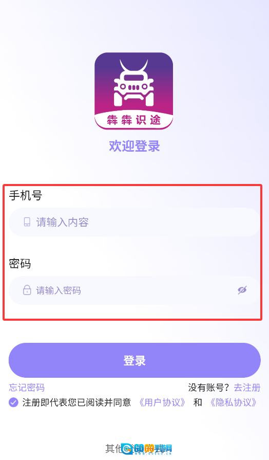 3、注册成功后会跳转回登录页面,输入已绑定的手机号与密码,就能快速进入应用的主界面。