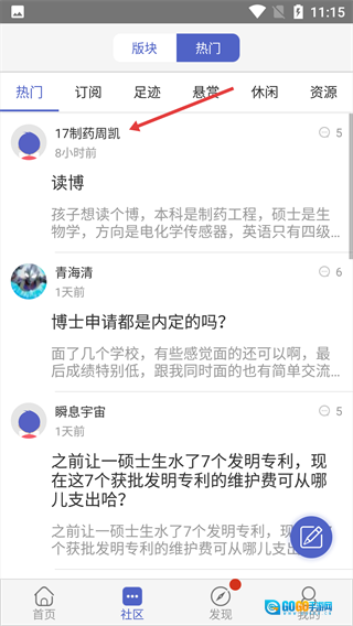 3、点击发布帖子的用户头像。