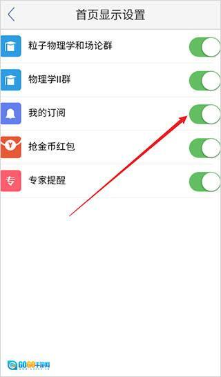 4、进入首页的显示设置页面,打开“我的订阅”开关。具体操作可参考下图。